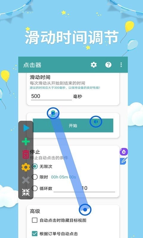 1、支持点对点加速且自动运行;可随时记录任意位置的点击或滑动动作,帮助用户解放双手,实现连续点击加速效果,还能轻松调整点击频率与时间间隔;