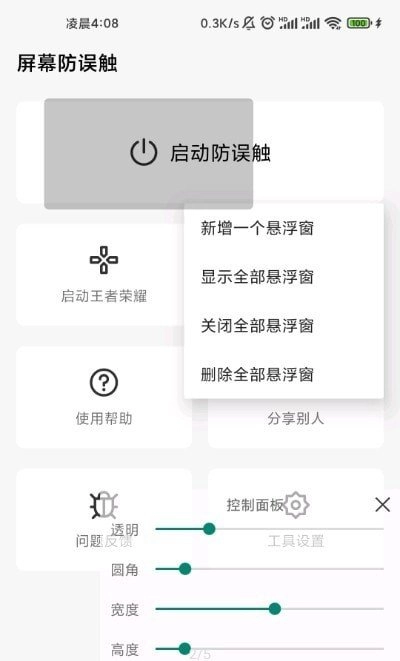屏幕防误触是一款能创建悬浮窗的实用工具软件,功能强大、操作简单且安全好用,能有效降低用户误触屏幕的概率。作为一款屏幕辅助工具,它通过设置悬浮区域来避免误触情况发生,尤其在使用过程中能减少误触几率,让你不必担心因误触导致操作问题,有防误触需求的用户可以尝试使用。