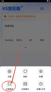 2.之后下方会有功能列表,找到点击【无痕模式】;