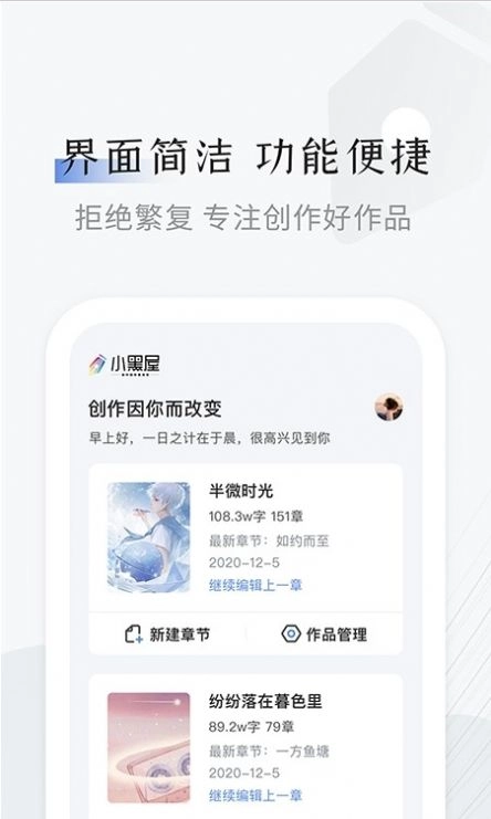 1、小黑屋App第一版上线全新,随时创作。