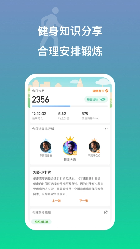 1、这是一款能让更多人体验健康运动生活的应用,它自带计步功能,我们只需直接查看,就能了解自己当天的运动数据。