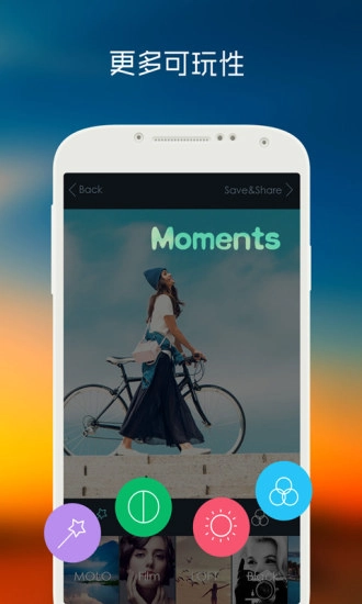 可以轻松把你的成果分享到各个社交平台,和家人朋友一起分享,成为朋友圈里的滤镜达人。