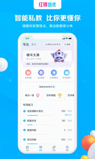 红领培优秉持“一站式”服务理念,依托科学规划的课程体系、精心筛选的师资团队、严谨的督学机制与智能技术辅助等多重优势,助力红领培优学员在考试中屡创佳绩!无论是笔试还是面试内容,都能得到全面覆盖;模拟考试大赛、错题即时纠正、专项组题训练以及每日练习等功能,搭配优质的线上题库资源与严格的课程管理,为学员带来更丰富的学习体验。