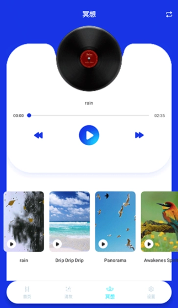 3.冥想页面能够为你模拟各类大自然的声音,助力你实现身心合一的状态