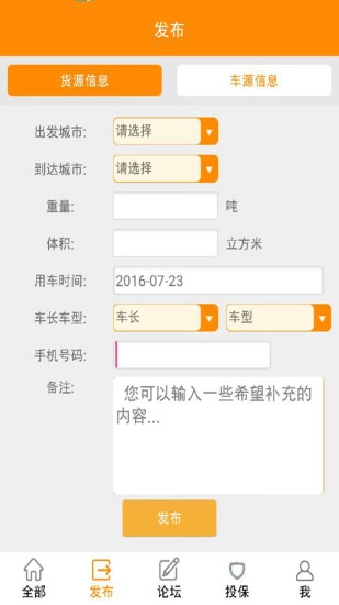 4、【一键发布】挑选需要发布的信息类型,按照表格进行选择并填写相关信息就能完成发布。