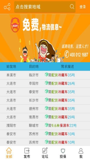 注册即赠100元,推荐好友再送10元!货主发货时,可实时查询周边车辆数量、每辆车的运费报价,轻松挑选价格优惠、信誉良好的司机达成合作,还能查看车辆详细信息;支付运费时可直接选择货物保险投保,省心省力。司机发布车源,能优先选择价高的运输订单,无需支付信息费、停车费,节省时间成本;我们还提供车险优惠、附近修车等贴心服务。我们是您身边的可靠伙伴,祝您一路平安!