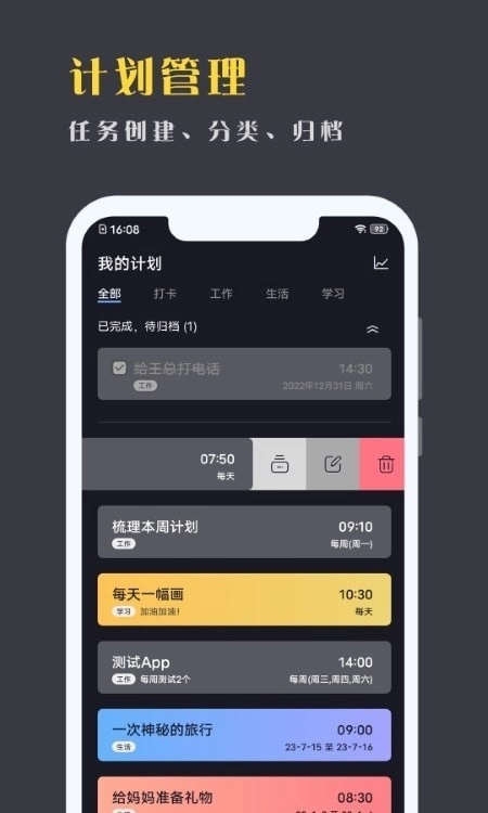 2、计划管理,任务创建、分类、归档