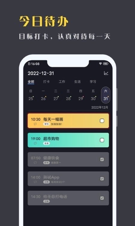3、今日待办,目标打卡,认真对待每一天