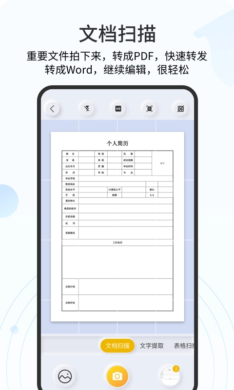 1、琥珀扫描官作为专业扫描工具,用户仅需通过设备端拍摄文件,它便能自动识别并生成文档内容,助力用户快速将纸质文件转为电子版,还可在线编辑、分享文件内容,有效提升办公效率。