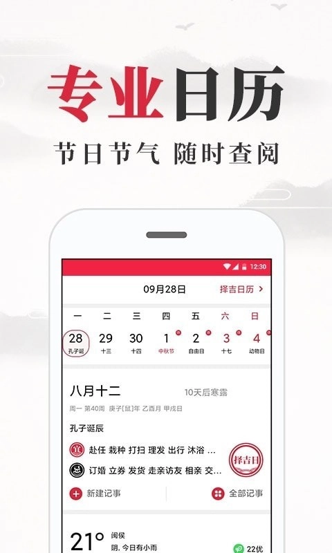 农历黄历万年历随便看,假日节气节日一个都不错过;