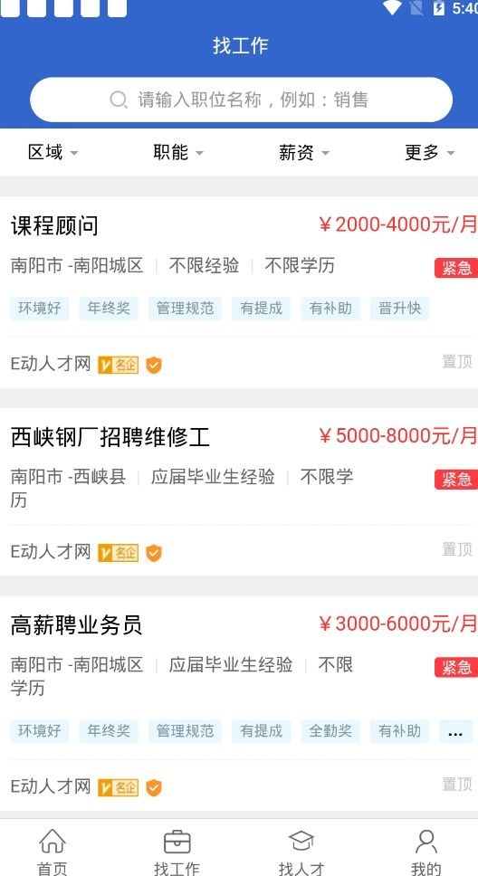 南阳人才网是专门面向南阳市本地居民的求职平台,当地待业的朋友们完全可以通过这个平台找到心仪的工作。平台为求职者提供了丰富的企业招聘岗位信息,还有附近职位推荐,能让生活更便捷,大家不用担心!感兴趣的朋友快来体验吧!