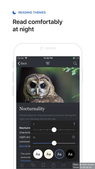 这款应用既保留了维基百科的简洁本质,又融入了趣味元素。其设计美观且无多余干扰,让你能专注于核心内容——阅读文章。你还可以根据自身习惯调整文本大小,并从纯黑、深色、深褐或浅色等主题中选择,打造最舒适的阅读体验。