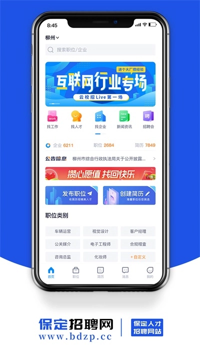 1、保定招聘网是一个专注于线上求职找工作的软件,