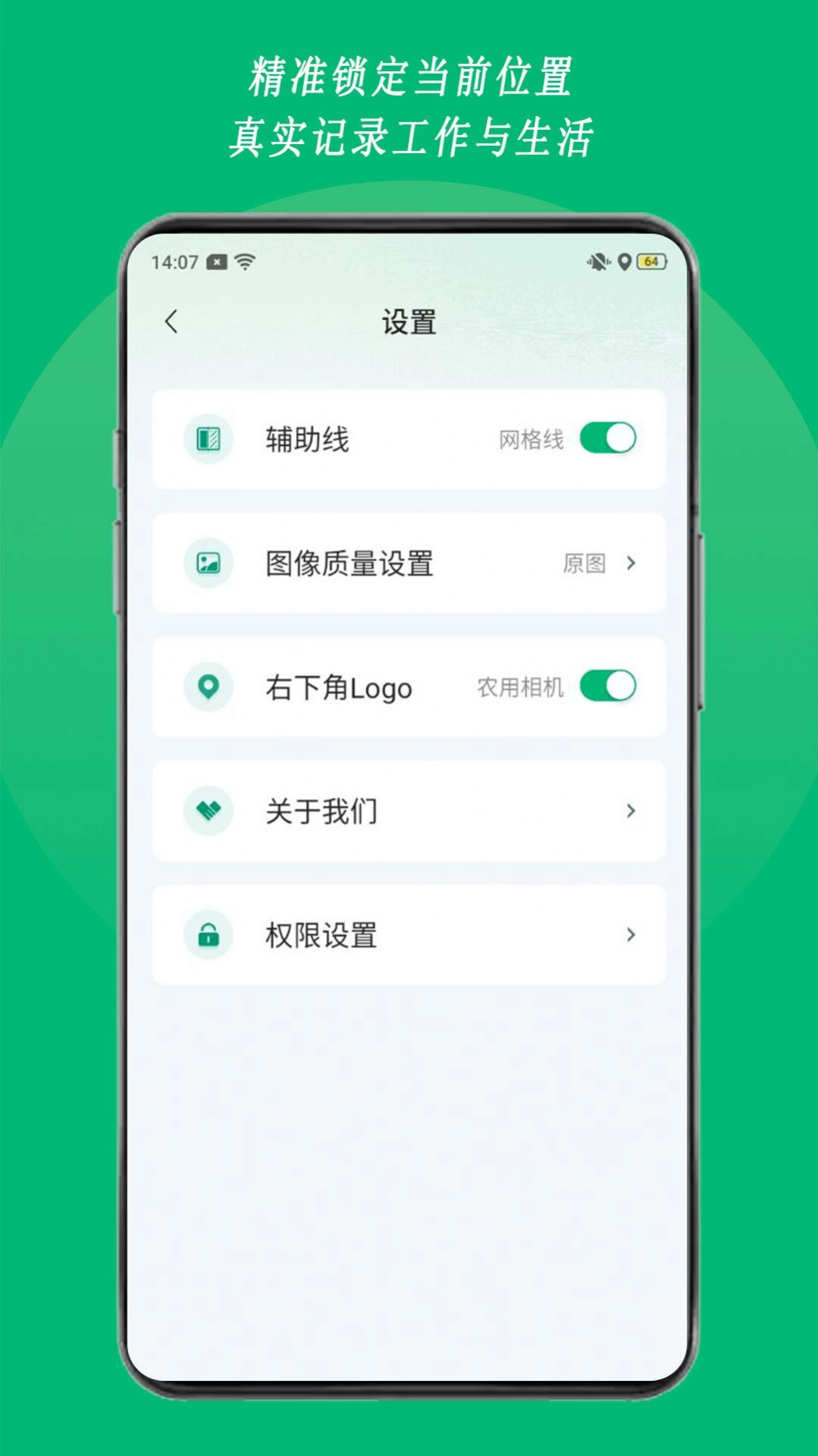 农用相机是一款专门服务于农业生产的便捷水印相机工具,拍摄的图片会自动添加时间、经纬度、天气等信息,支持在线拍摄打卡功能。用户可通过软件进行水印设置,添加所需内容到照片中,有需要的话不妨来体验一下!