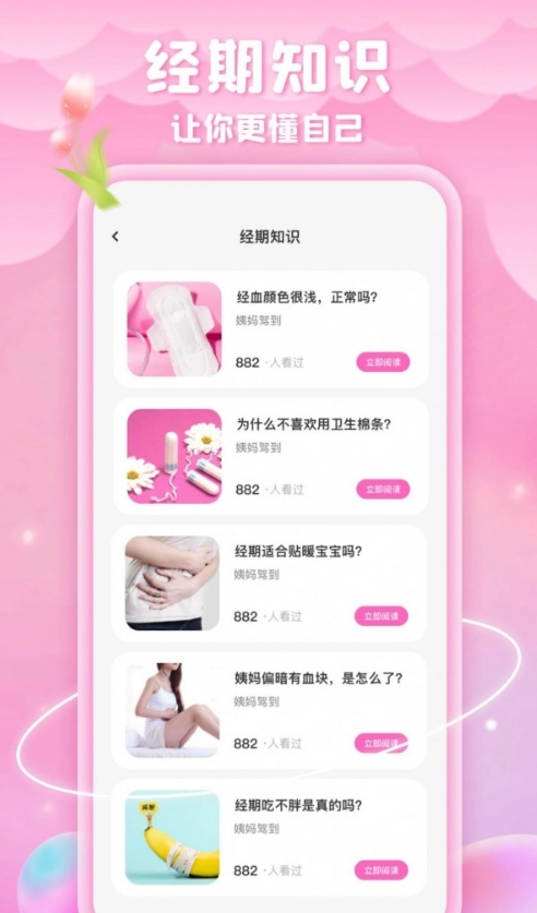 2、掌握每一个月经周期的相关知识,能够开展科学化的科普体验活动,并提供各类相关知识供用户在线学习与了解。