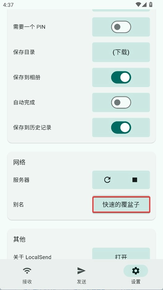 1、打开LocalSend,点击右下角的设置按钮