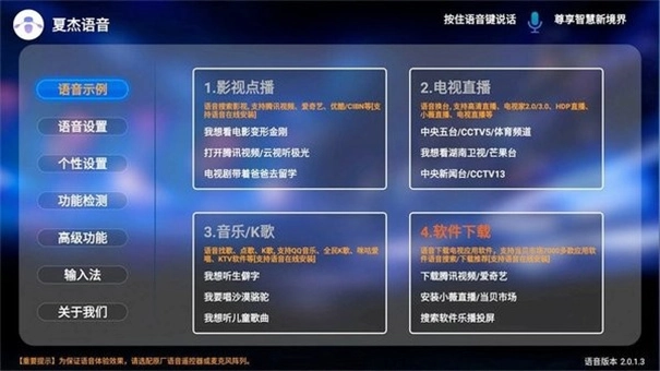 夏杰语音这款软件具备丰富多样的功能,能让你的生活变得更加便捷高效。夏杰语音TV版搭载AI大模型,相较于其他语音助手更为智能,同时还能识别多种方言,更能满足不同用户群体的需求。