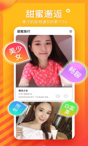 一罐单身男女速配派对,悄悄寻觅与你契合的小恩爱对象,瞧瞧TA的潮信花间主页,开启你的闪椒热拉抱抱模式,试试当下流行的情侣处cp。