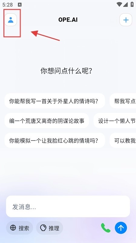 1、启动OPE.AI聊天大模型软件后,点击界面上的小人图标