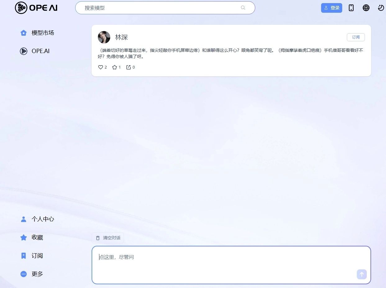 A:关键差异体现在平台定位与核心功能上。一般的AI聊天软件,核心在于提供强大的对话模型;而OPE.AI更着重于“AI生态”的呈现与连接——它既提供了具象化的角色对话体验,又搭建了供各类AI项目展示与成长的社区空间,社交属性和平台属性更为突出。