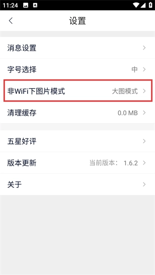 4、选择完成后,【非WiFi下图片模式】会显示为选定的模式,设置随即生效,您可以返回设置页调整其他参数。