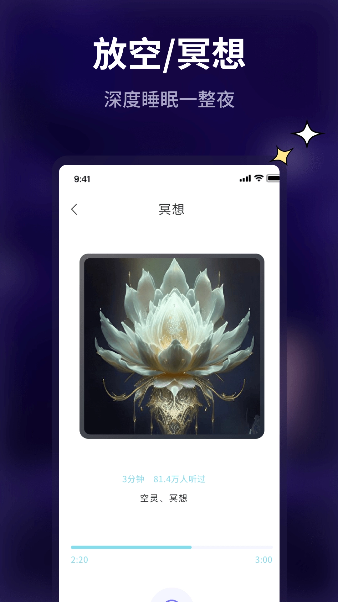 2、为用户准备了丰富多样的助眠方法,像治愈类音乐就包含冥想音乐、白噪音等,能够帮助人们放松身心、缓解疲劳。