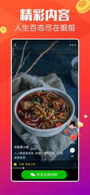 3、浏览喜爱的短视频时,只需一键就能完成分享,同时还能进行点赞互动。
