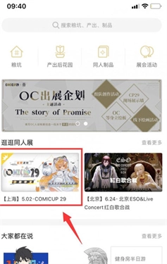 第一步:打开cpp客户端,点击首页的漫展活动宣传图片,进入展会详情页面。