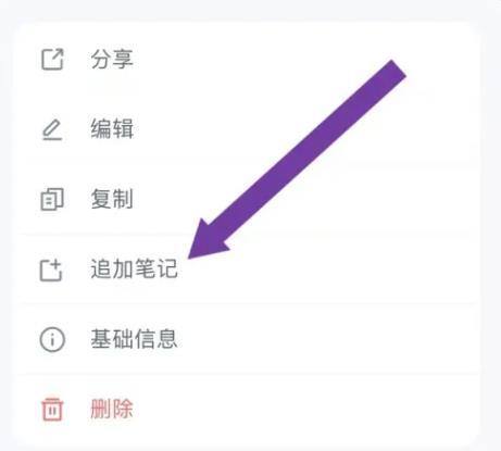 2.打开笔记操作列表,点击【追加笔记】