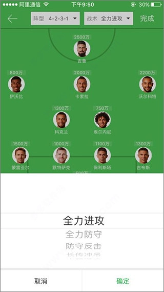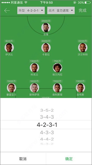 1、选择阵型,点击阵型的下拉菜单,挑选自己心仪的球队阵型。
