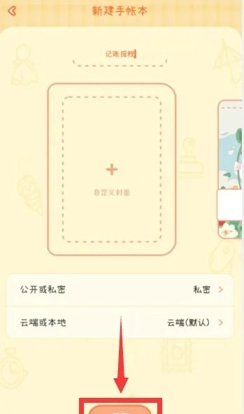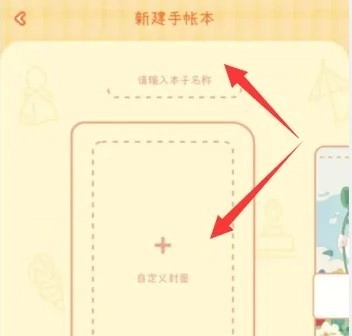 2、进入新建手账本的页面,输入本子的名称并进行封面自定义。