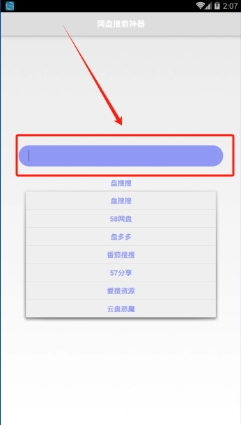 1、并打开盘搜搜,在“搜索框”输入想获取的资源名
