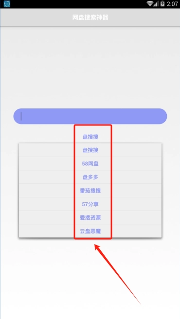 2、要是你在盘搜搜没找到想要的资源,可以在首页切换其他搜索引擎继续搜索