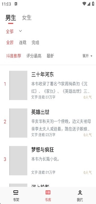3、进入书库就能看到海量优质小说,便于你更高效地筛选。