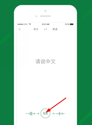 3、你可以通过语音输入的方式进行语言翻译,语音输入结束后点击“完成”按钮,翻译结果便会呈现出来。