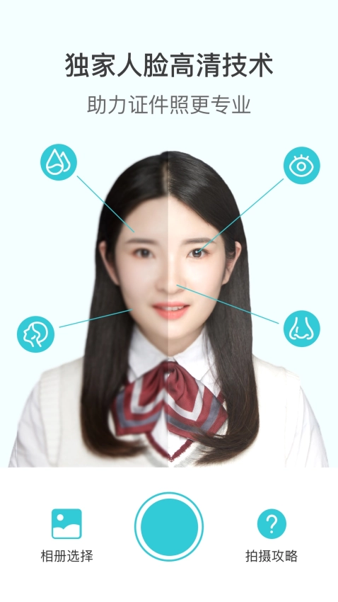 2、拍摄效果与画质表现清晰出色,高清专业拍摄功能,同时运用先进的人脸高清技术,确保证件照中的人像清晰呈现、细节清晰可辨。