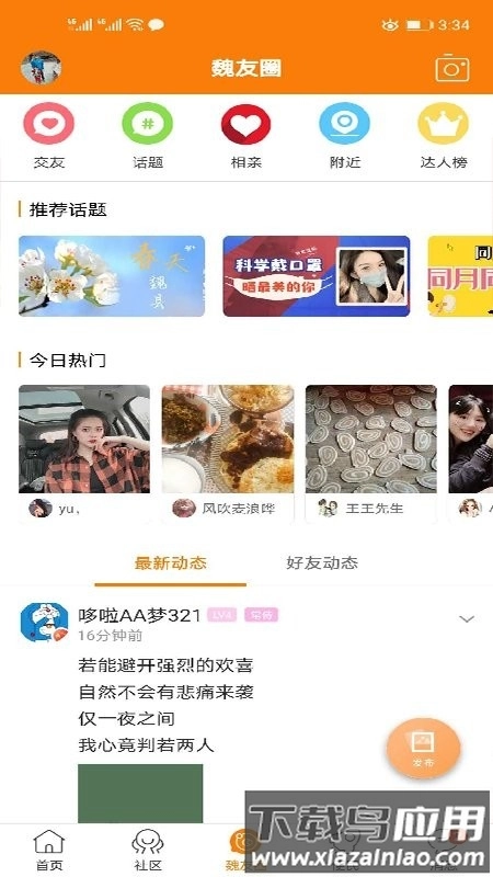 魏友圈提供同城好友查找、话题讨论参与以及附近的人搜索等功能。