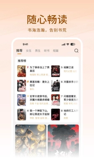 2、在应用内部集成智能推荐系统,可根据用户的阅读习惯和偏好,精准推送其可能感兴趣的作品以及实时热门榜单。