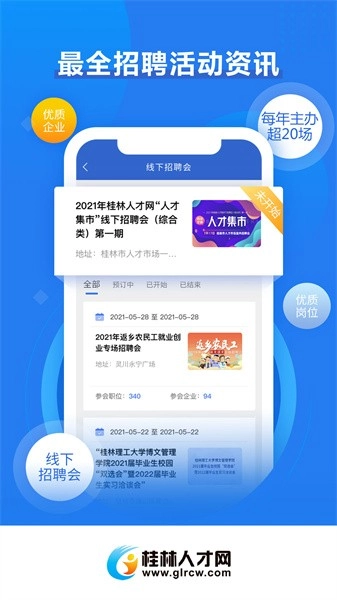新文本:增加了简历智能诊断功能,优化了职位搜索的响应速度;解决了部分机型的兼容性问题,增强了消息推送的稳定性;同步了桂林近期的大型招聘会信息。