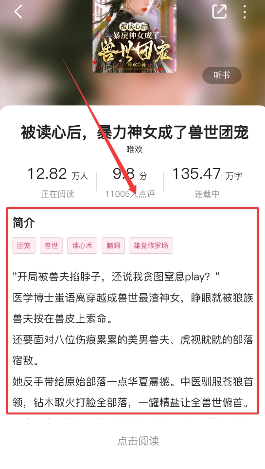 2、封面设计精美,右侧清晰展示标题、评分、连载字数等关键信息;整体采用浅色系界面,布局整齐,带来舒适的阅读体验。