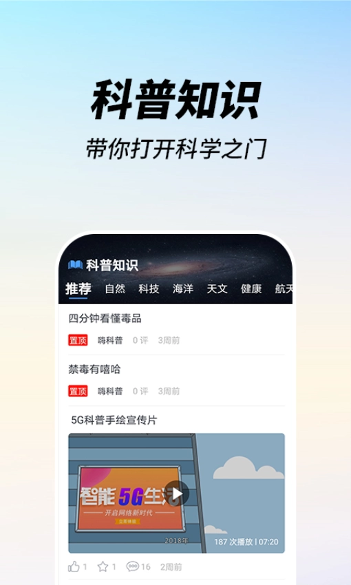 1、学习模式采用碎片化知识输入设计,每日推送三个科普短视频,累计学习时长不超过十五分钟,适合利用课间与睡前时间完成。