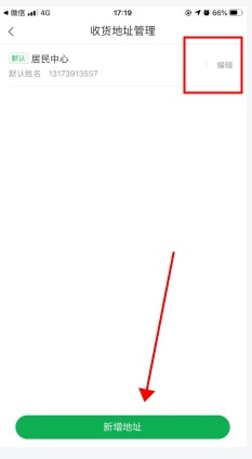 2、我们能够对已有的收货地址进行编辑,也可以点击下方的【新增地址】按钮。