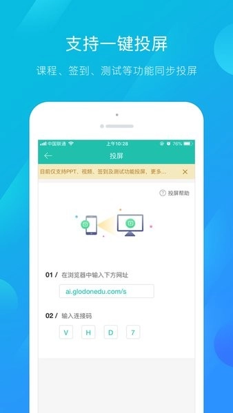 1、教学资源投屏、签到投屏、提问投屏、测试投屏