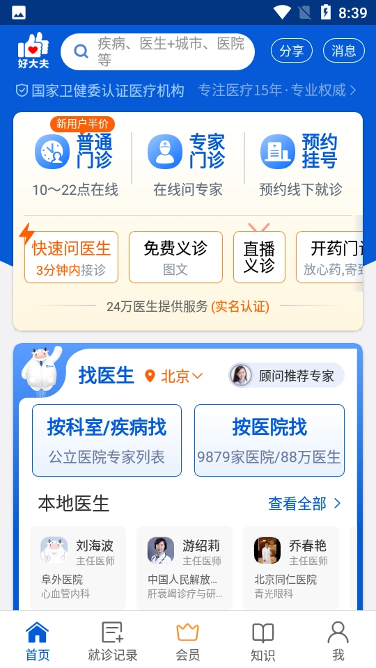 好大夫在线是一款广受大众好评与认可的在线综合医疗服务平台。该平台的服务覆盖全国各大城市及地区,用户可通过它实现线上问诊、预约挂号等功能。无论是居家咨询专家,还是线下就医,它都能提供一站式解决方案。平台上汇聚了数十万权威医生在线坐诊,用户有任何健康问题都能随时进行线上咨询!