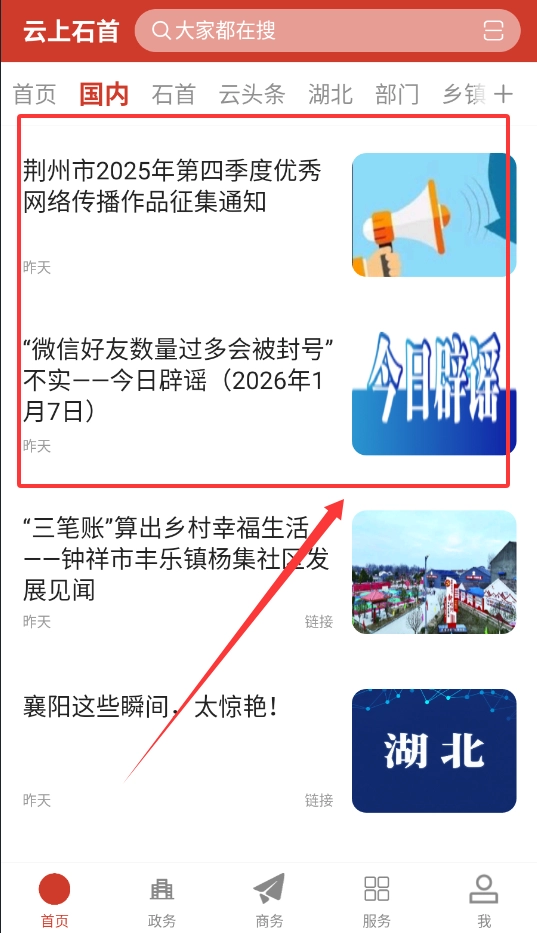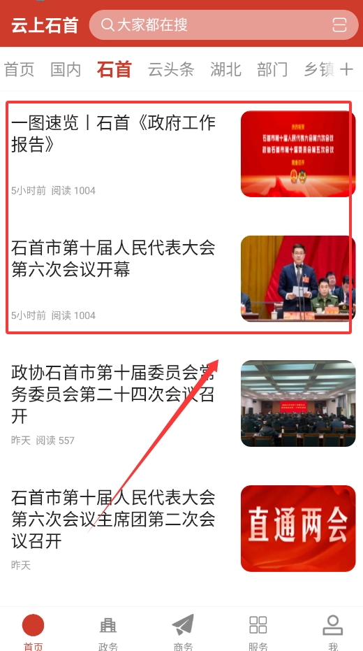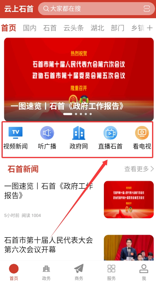 1、就能看到“石首新闻”等重要会议报道,往下滑动还能找到视频新闻、听广播和政府网等实用板块。