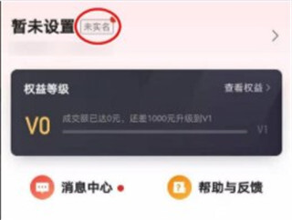 3、进入个人中心页面,若刚注册尚未完成实名认证,可选择“未实名”选项或点击右上角的箭头图标。
