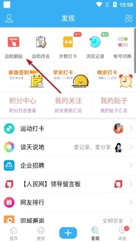 2、然后在这里就可以看到自己的自助删帖的功能了。