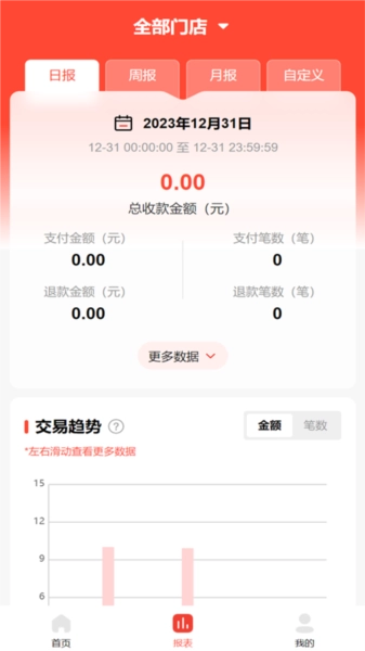 里面还包含用户门店的交易趋势图表,能让用户随时查看了解。