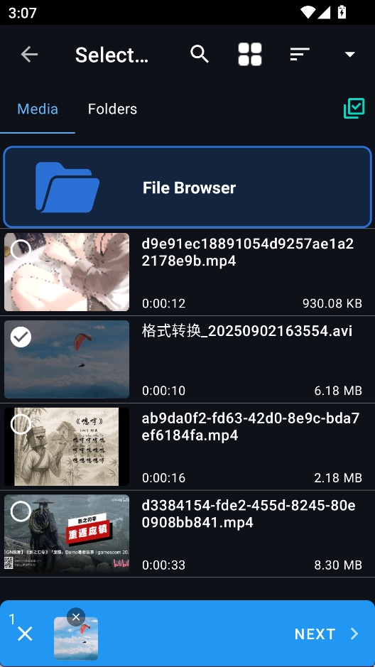2、选择一个视频,点击next