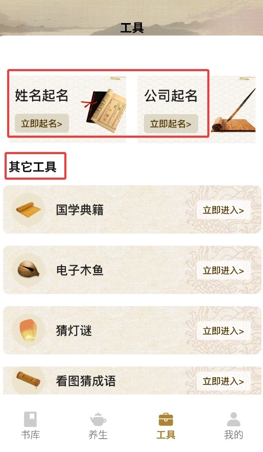 4、工具集涵盖姓名起名、公司命名以及其他与传统文化相关的实用工具。